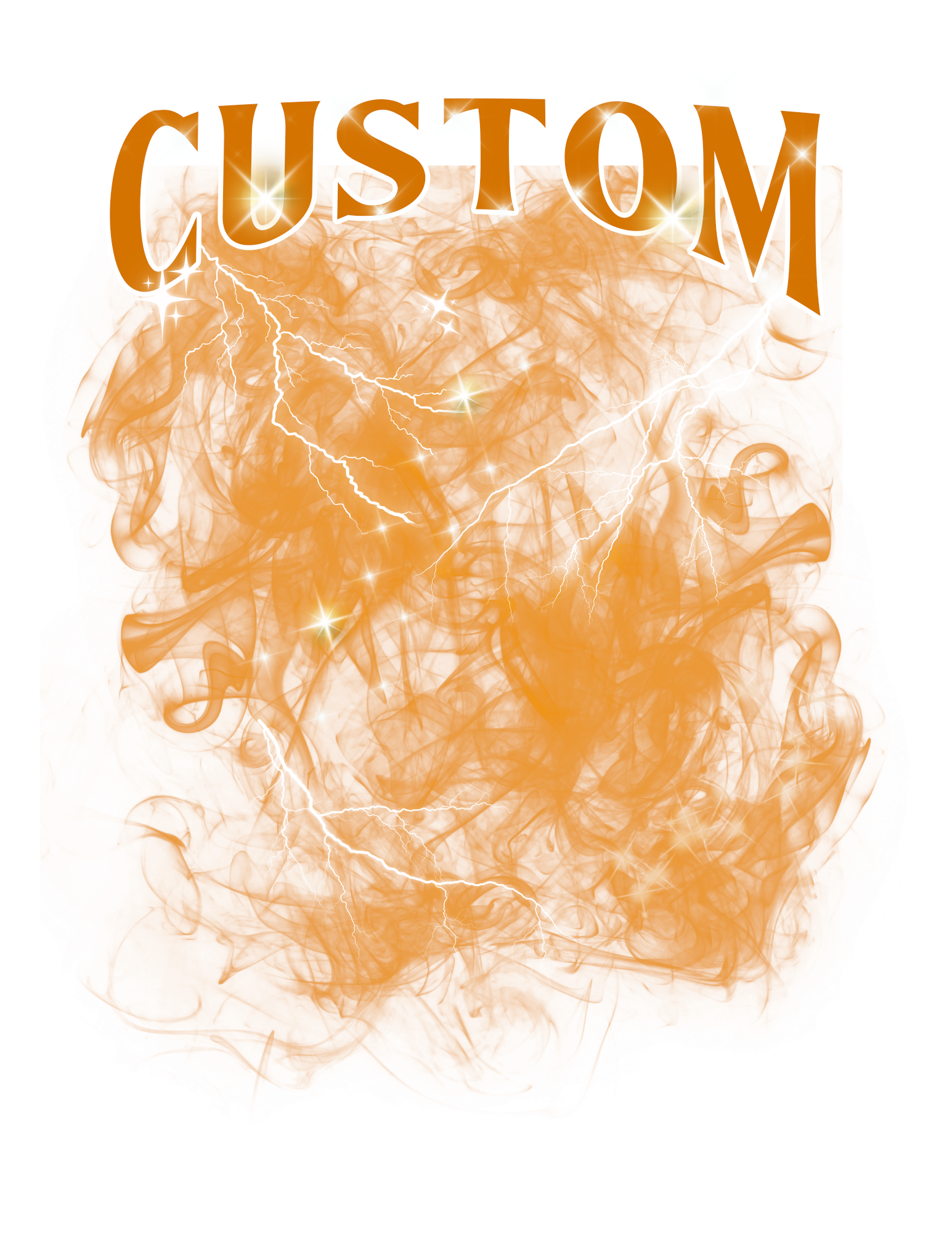 You may also send us your preferred color scheme, we adjust the colors of the smoke effect to what you would like, along with font. If the design is for a team, you can email us a copy of the team logo for color matching. Please keep in mind that computer screens display in RGB and we print in CMYK, so colors may vary slightly.