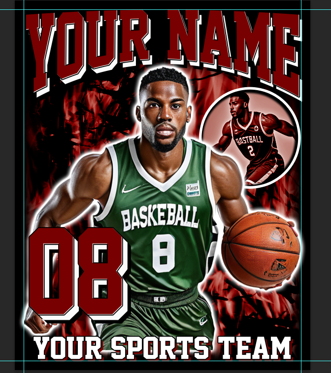 Show off your athlete in style with this custom bootleg-style t-shirt design. With bold retro graphics, dramatic effects, and a powerful layout, this design captures the energy of the game. It can be customized for any player, in any sport, making it a perfect keepsake or game-day shirt. Personalize it with your name, jersey number, sports team, color scheme, and photos to create a unique look that will stand out on and off the field or court.